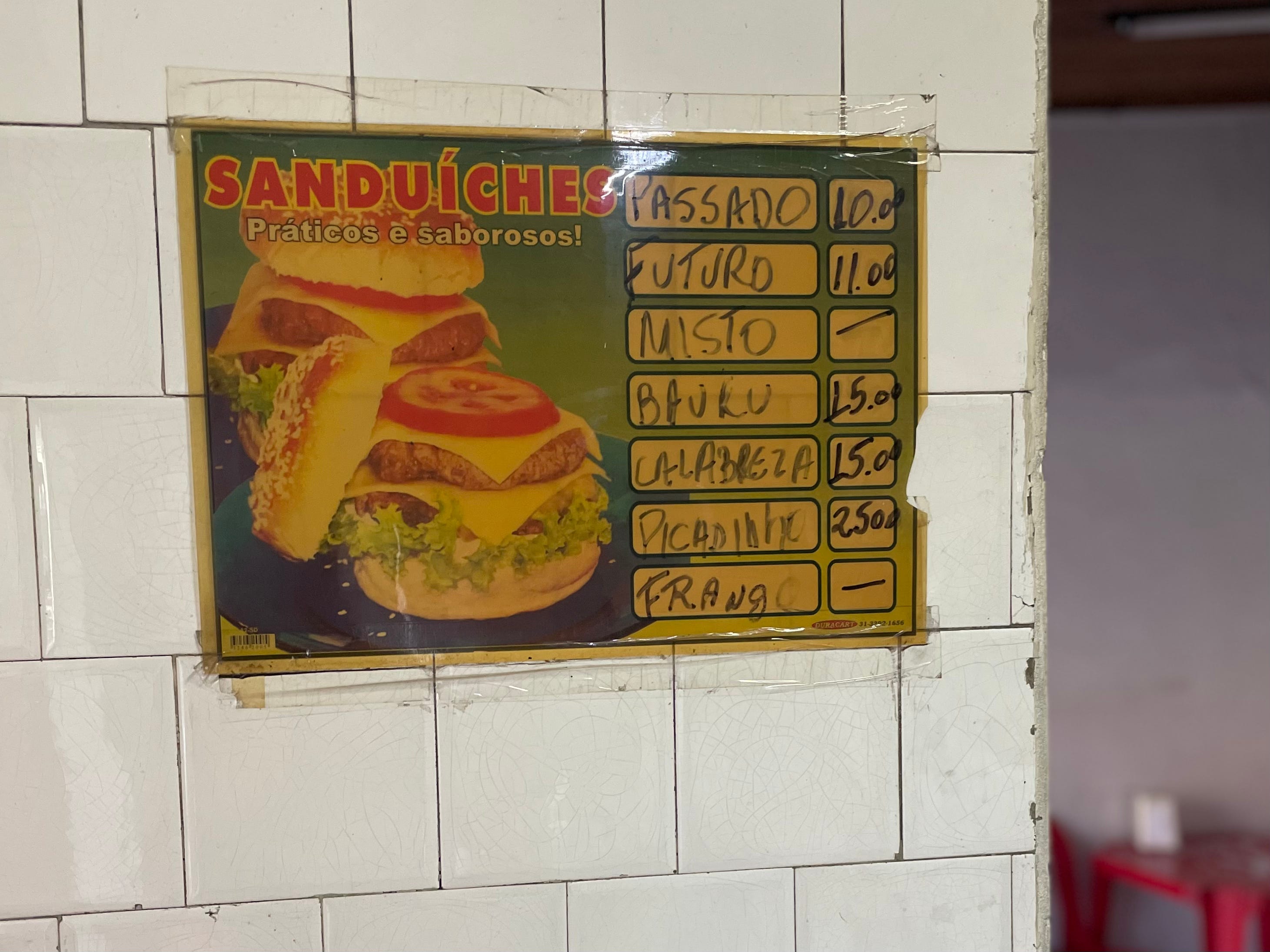 Uma batata cozida inteira, cortada ao meio em duas bandas e recheada com uma fatia dobrada de mortadela, presa com palitos de dente e mergulhada no óleo quente, por exemplo. Um sanduíche chamado “passado”, já que tem a mortadela passada na chapa, coberta de uma fatia fina de queijo fresco e três fatias de tomate, fechados no pão francês e servido cortado em dois na vertical, e depois em rodelas, para comer com as mãos, aos poucos, aos pedaços. Das duas descobertas, uma parecença crucial: as bordas crocantes da mortadela que entornam pro lado de fora da batata e do pão, tostadas e crocantes, que se estivessem num bistrô da moda, chamariam de mortadela crispy. No mesmo lugar onde provei o tal, o Bar do Passado, em São João da Boa Vista, trazido por um garçom apelidado Pé de Pano, também vendem um sanduíche chamado futuro — “é igual ao passado, só que com um ovo estalado, bem”. Tive esperança no mundo.
